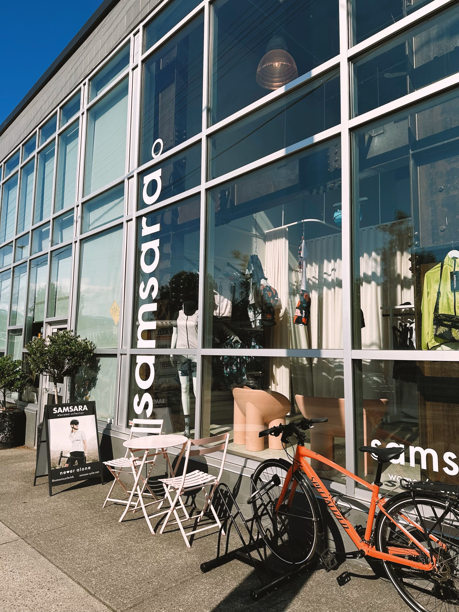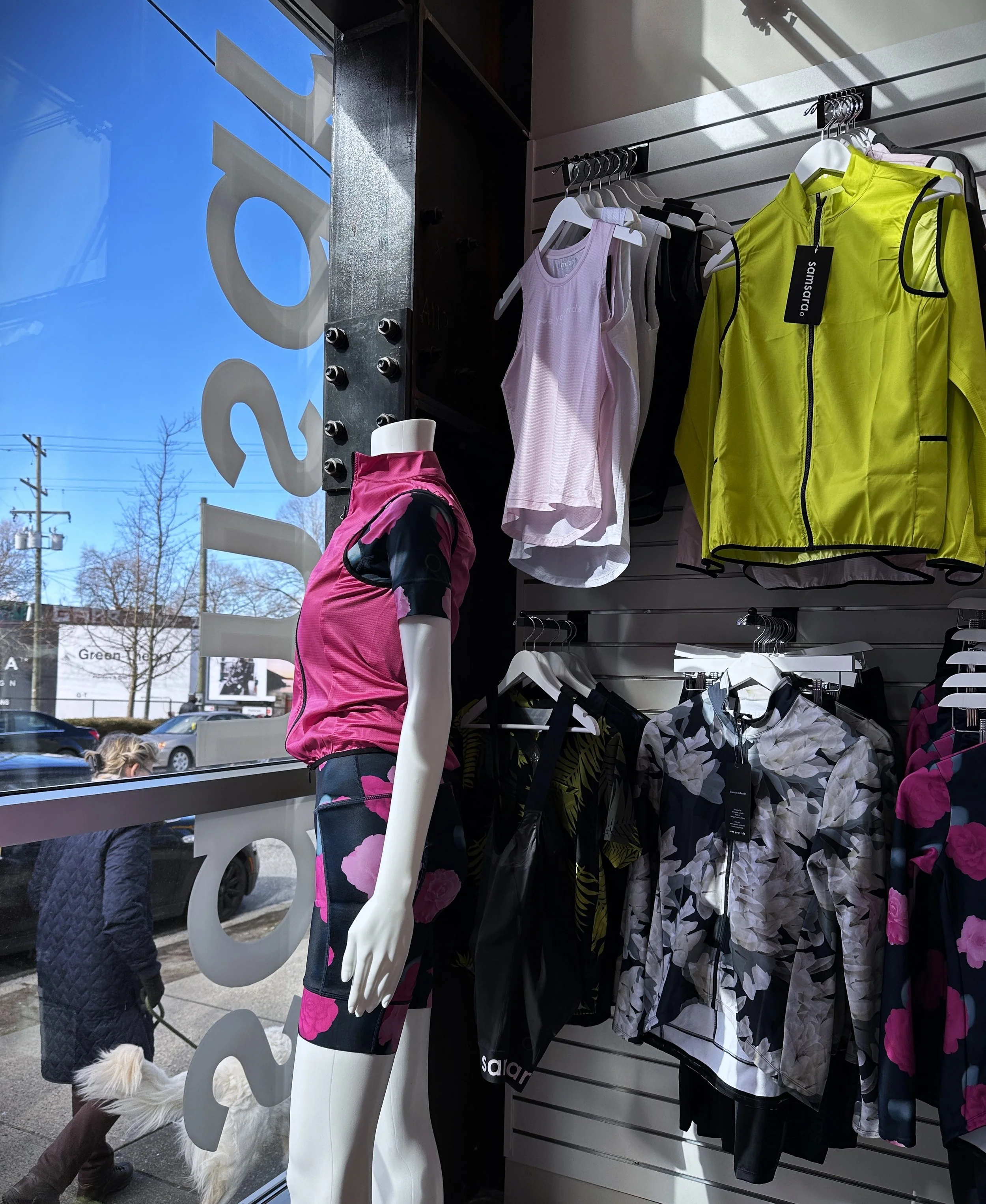 A small square footage space that holds both the creation of premium women’s cycling gear, as well as ready-to-wear pieces, needed a soft separation from work and play.
