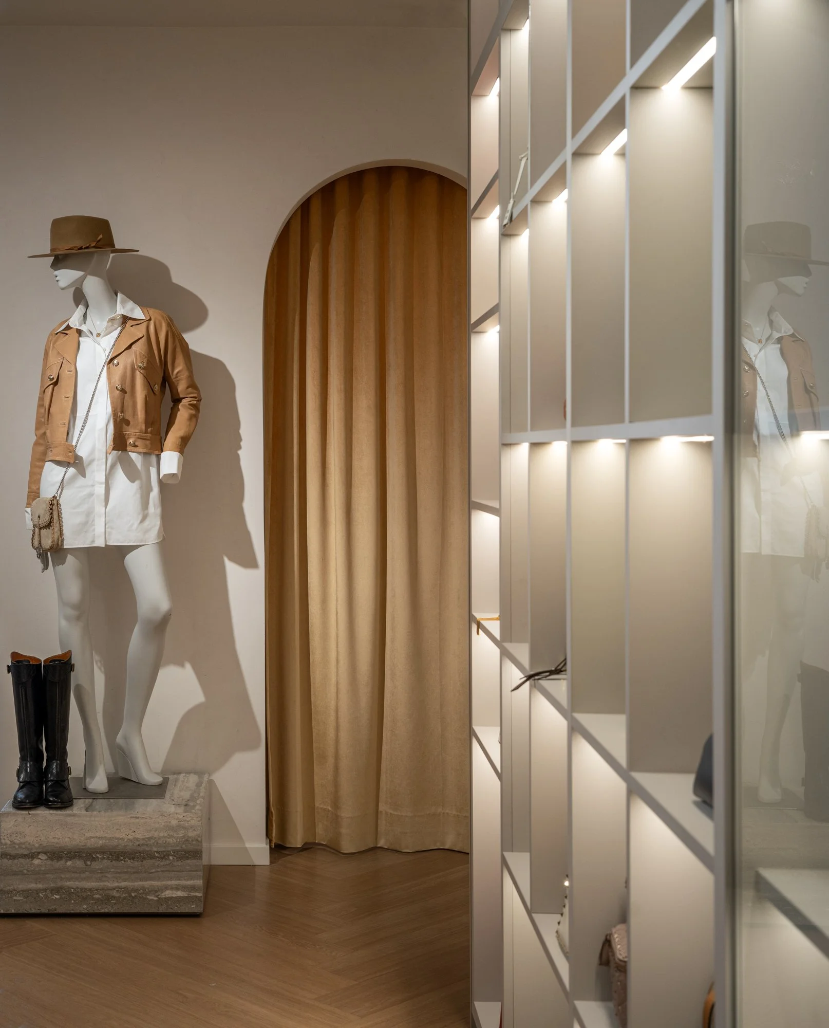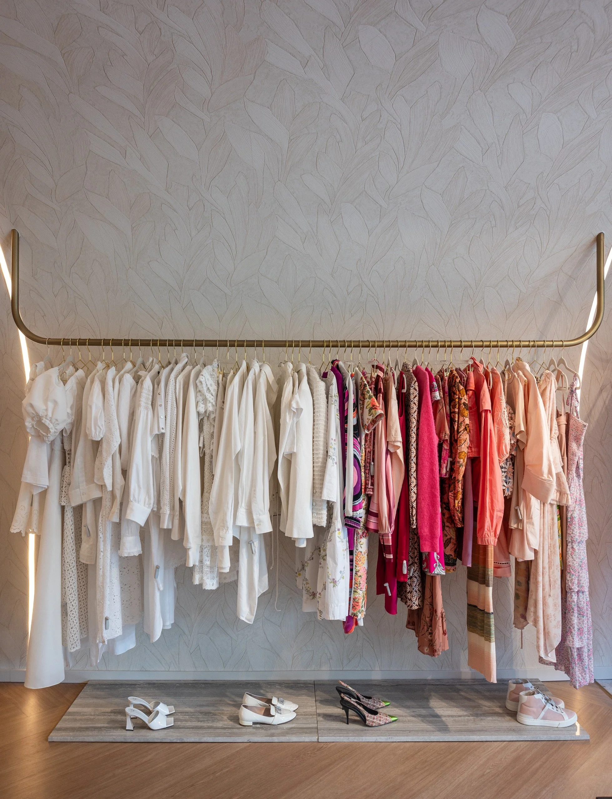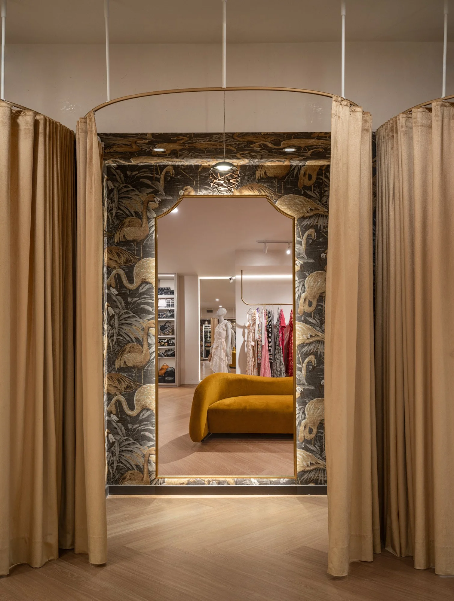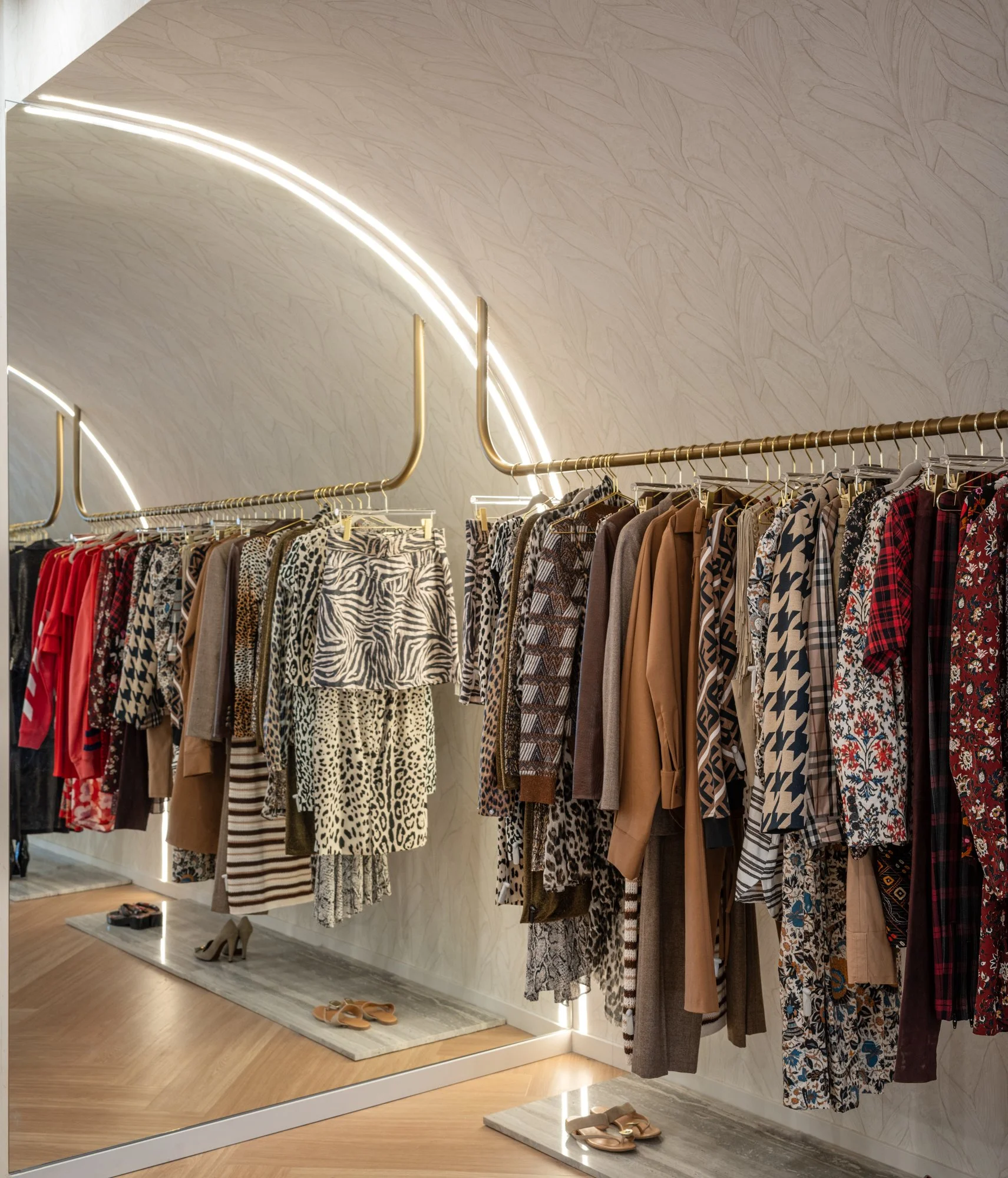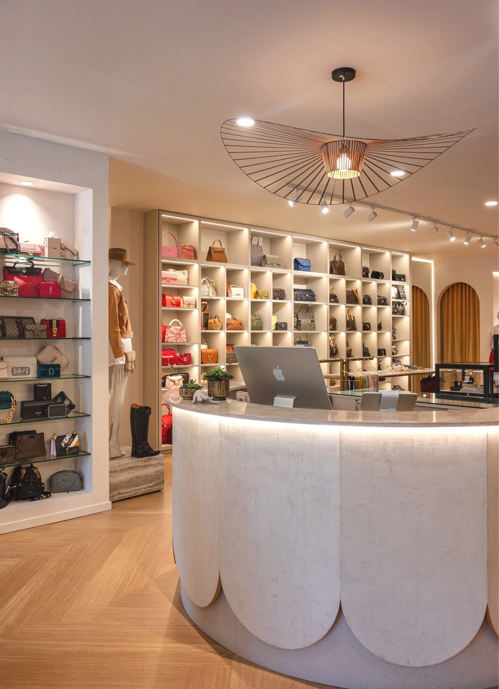 The rapid growth of the consignment market was instrumental in maintaining the prestige and integrity of Vancouver’s top-rated luxury consignment store. To set the brand apart, it was designed with the sophistication of a high-end boutique. Courtney Watkins, owner of Mine & Yours, envisioned her fourth location to feel like "your best friend’s closet." Building on this vision, Fay expanded the design to create an elevated, interior that was inspired by time. The arched wall dressed in a plaster leafy wallpaper was in sync with Venetian plaster and a fluid transition to 1920’s juxtaposition to the flamingo wallcovering. The use of time-capsule interior, paying homage to luxury textiles and wall coverings. The result is a boutique that provides a truly elevated experience, blending familiarity with high-end luxury.