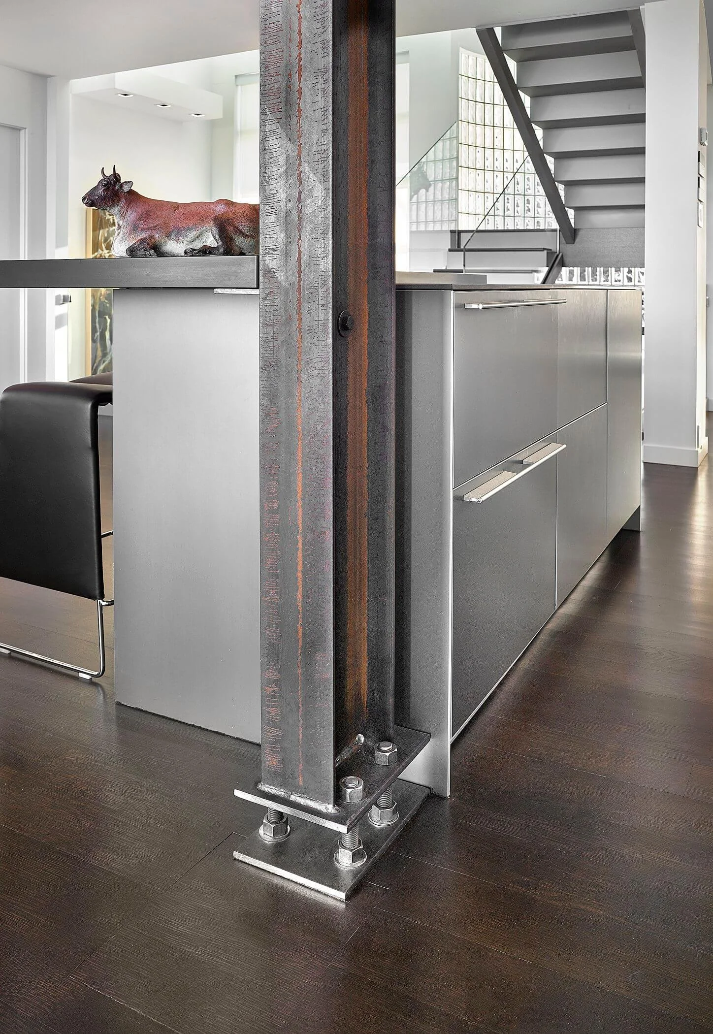 Minimalist industrial architecture for the residence was designed by architect, Rick Arndt. The client’s love of art & colour inspired a clean design, providing a backdrop to showcase the pieces.
